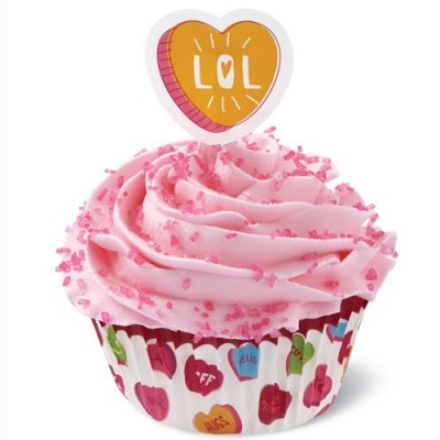 Pirottini FunCakes con decorazioni a cuori, ideali per confezionare dolci di San Valentino. Sono adatti alla cottura in forno di cupcake e muffin.