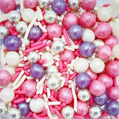 Mix di zuccherini, palline e perline di diverse dimensioni nei colori verde, bianco e argento, con finiture perlate e metallizzate ideali per decorare torte, biscotti, cupcake e dolci in genere.